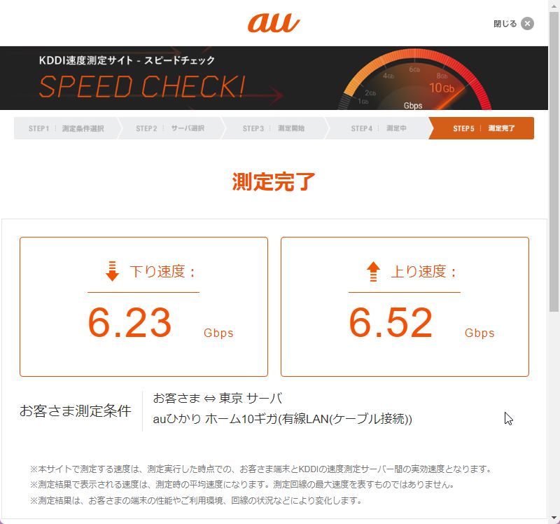 auひかりホームプランの速度は理論値だけでなく、実測値としても高速です。