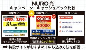 ※当サイト限定キャッシュバックとは、当サイト経由で申し込んだ場合に適用される金額です。通常キャッシュバックよりも特別に金額が増額されています。