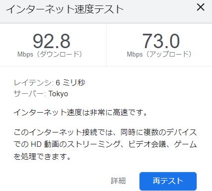 100Mbps上限のVDSL回線(ソフトバンク光)を、店員に推奨はされないまま契約したけど、古い賃貸でもこれだけの速度が出れば大満足や。ping値も無線には到底出せない早さ。やはり有線、有線はすべてを解決する